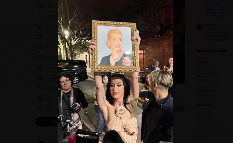 La primera noche de Katy Perry en Buenos Aires no pasó inadvertida. Mientras en la provincia de Buenos Aires se conocían los resultados de las elecciones legislativas, con una amplia victoria de Fuerza Patria sobre La Libertad Avanza, la estrella pop fue vista alzando un cuadro de Eva Duarte de Perón en la puerta del hotel Four Seasons, donde se hospeda durante su estadía. El gesto no tardó en recorrer las redes sociales, que estallaron con chistes y comentarios. "Katy Perry vino a votar y fue voto cantado, amor", bromeó un usuario. Otro sumó ironía: "Kuka Perry, Milei en su cuenta de Twitter".