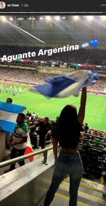 Al ser consultada del porqué de su asistencia al estadio, sumó: “Trabajo en una agencia de modelos, pero viajé a Estados Unidos para hablar en una agencia de allá”. Según contó, se encuentra viviendo en México, donde trabaja en "una agencia de modelos".