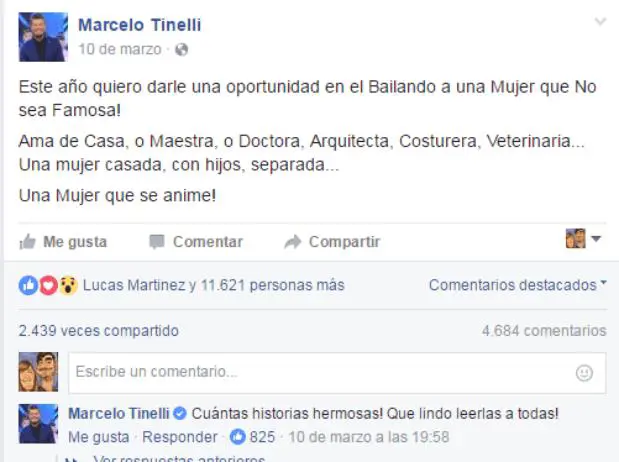 Uno de los mensajes de Tinelli en su cuenta de Facebook.