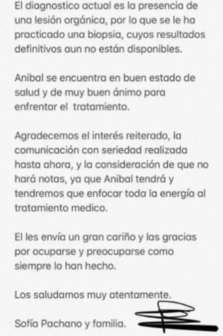 Aníbal Pachano reveló que sufre de cáncer.
