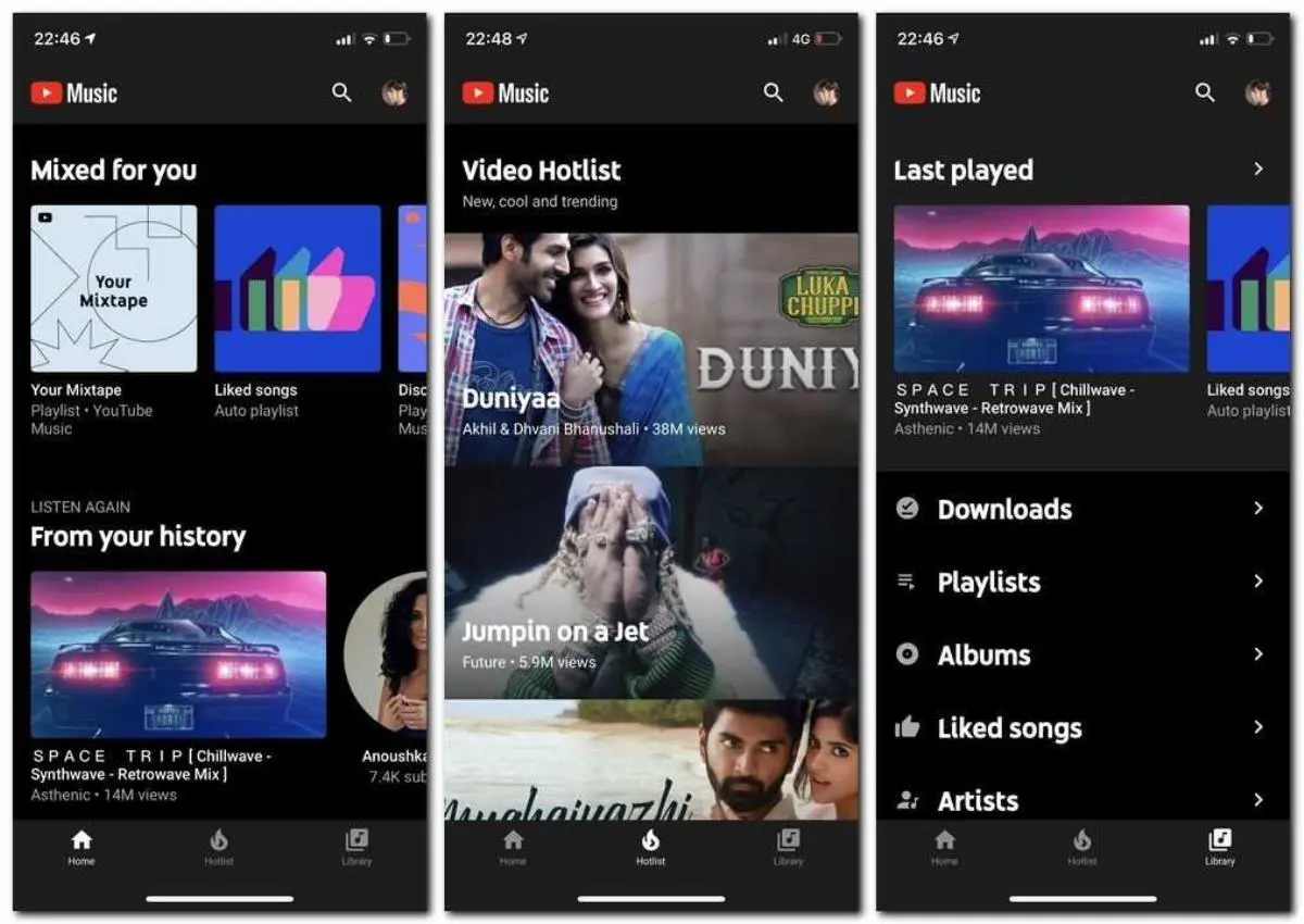 Por otro lado, YouTube Music hace uso de su extensísima trayectoria y diversidad de videos que ya están subidos a Internet. Por esto mismo, podemos acceder a todo el contenido registrado en la plataforma y reproducirlo en la aplicación, mientras que Spotify, que si bien tiene una importante variedad de músicos, empalidece con respecto al poderío de YouTube.