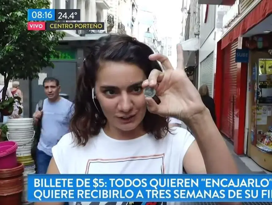 Y aclaró: “Yo me traje un montón de billetes, como para aprovechar la nota, me dijeron 'mira tu nota', y entonces tengo $15 para cambiar'''. Con el reclamo puesto al aire, un tanto irónica, la periodista aseguró que algunos locales ya comienzan a ver con "malos ojos” a aquellos clientes que abonan el producto con billetes de cinco pesos.