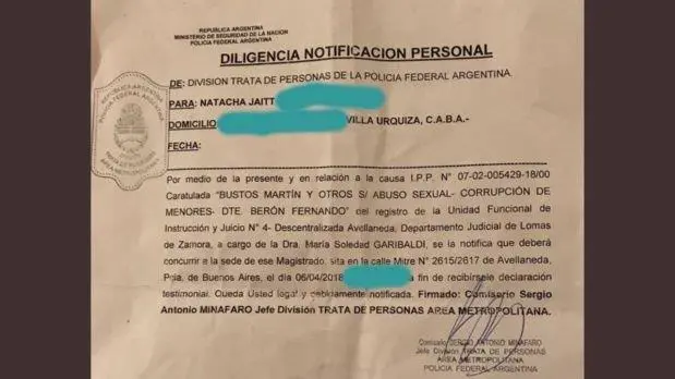 Citación de la fiscal a Natacha Jaitt.