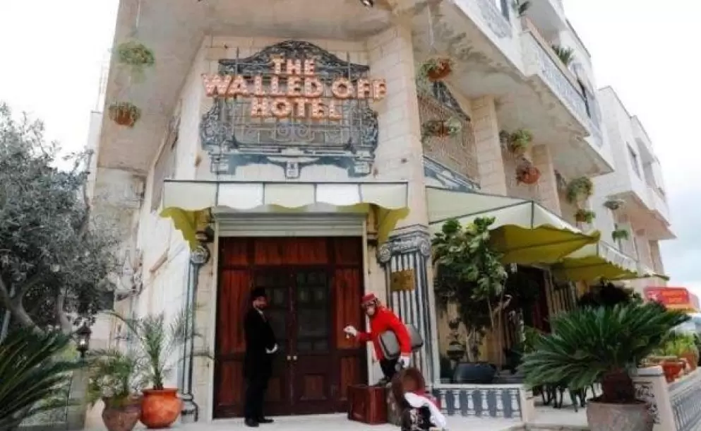 Ahora se embarcó en un proyecto muy diferente, un hotel de tres estrellas ubicado en Belén, Palestina, a muy pocos metros del muro que Israel levantó en Cisjordania. El establecimiento cuenta con 10 habitaciones que pueden admitir hasta 20 huéspedes, pero con una particularidad, las vistas desde las ventas son "las peores del mundo" y sólo cuenta con 25 minutos de luz de sol directa al día.