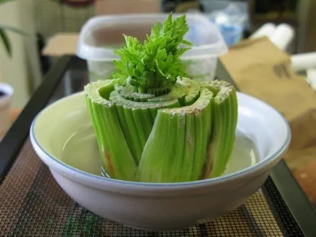 Colocá el extremo de la raíz en un cuenco poco profundo con agua y crecerá desde el centro. Hay que cosechar en el lado más pequeño para obtener el mejor sabor.